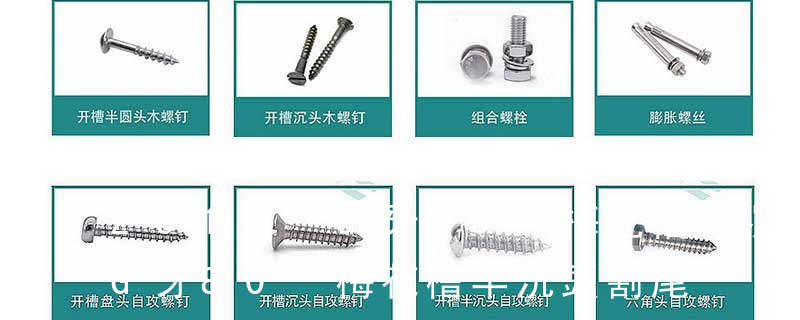 10.半沉頭 raised countersunk head (oval槽型:1.一字2.內(nèi)三角3.內(nèi)角四方4.十字5.米字6.花形7.梅花形8.花形一字9.特形10.內(nèi)六角英文名稱十字槽盤頭組合機(jī)絲牙螺釘 采用的是GB818 Cross recessed pan head Combination screws (鐵板牙自攻螺絲) B-2: Plastic Tapping Screw. (塑膠用,自攻螺絲) C: Wooden Screw : 木工螺絲 D: Drywall Screw :水泥墻螺絲 E: Self Drilling Screws鉆尾螺絲(不銹鋼鉆尾螺絲,復(fù)合材料鉆尾螺絲) F:膨脹螺絲,四片膨脹螺絲又