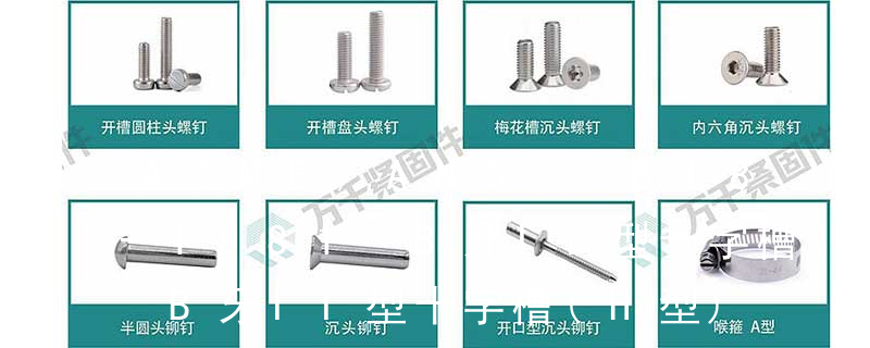 外扳擰:六角、六角法蘭面、六角凸緣、六角花形等;內(nèi)扳擰:一字槽、十字槽H型(Phillips)、十字槽Z型(Pozidriv)、十字槽F型(Frearson)、四方槽(Scrulox)、復(fù)合槽、內(nèi)花鍵、內(nèi)六角花形(梅花槽)、內(nèi)三角、內(nèi)六角