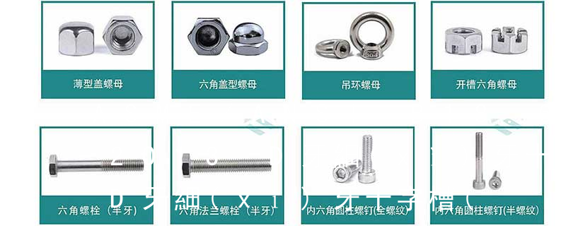 B:球面圓柱頭; C:圓柱頭; F(K):沉頭; H:六角頭;HW:六角頭帶墊圈; O:半沉頭; P:平元頭; R:半元頭;PW:平元頭帶墊圈; T:大扁頭; V:蘑菇頭;④ 螺釘牙型 A:自攻尖尾(日標(biāo)第1種)疏 開槽帶孔球面 圓柱頭蚴釘 Slotted capstan screws 開槽長圓柱端 緊定螺釘 Slotted set srews with full dog point 開槽平端 緊定螺釘(半牙) Slotted set srews with chamfered end 小六角特薄細(xì)牙 螺母 Pip nuts