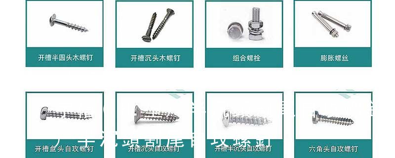 (鐵板牙自攻螺絲) B-2: Plastic Tapping Screw. (塑膠用,自攻螺絲) C: Wooden Screw : 木工螺絲 D: Drywall Screw :水泥墻螺絲 E: Self Drilling Screws鉆尾螺絲(不銹鋼鉆尾螺絲,復合材料鉆尾螺絲) F:膨脹螺絲,四片膨脹螺絲又